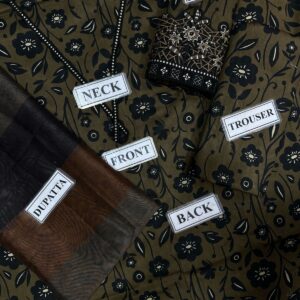 Crimson Lawn Cotton Suit 3PC Silk Dupatta