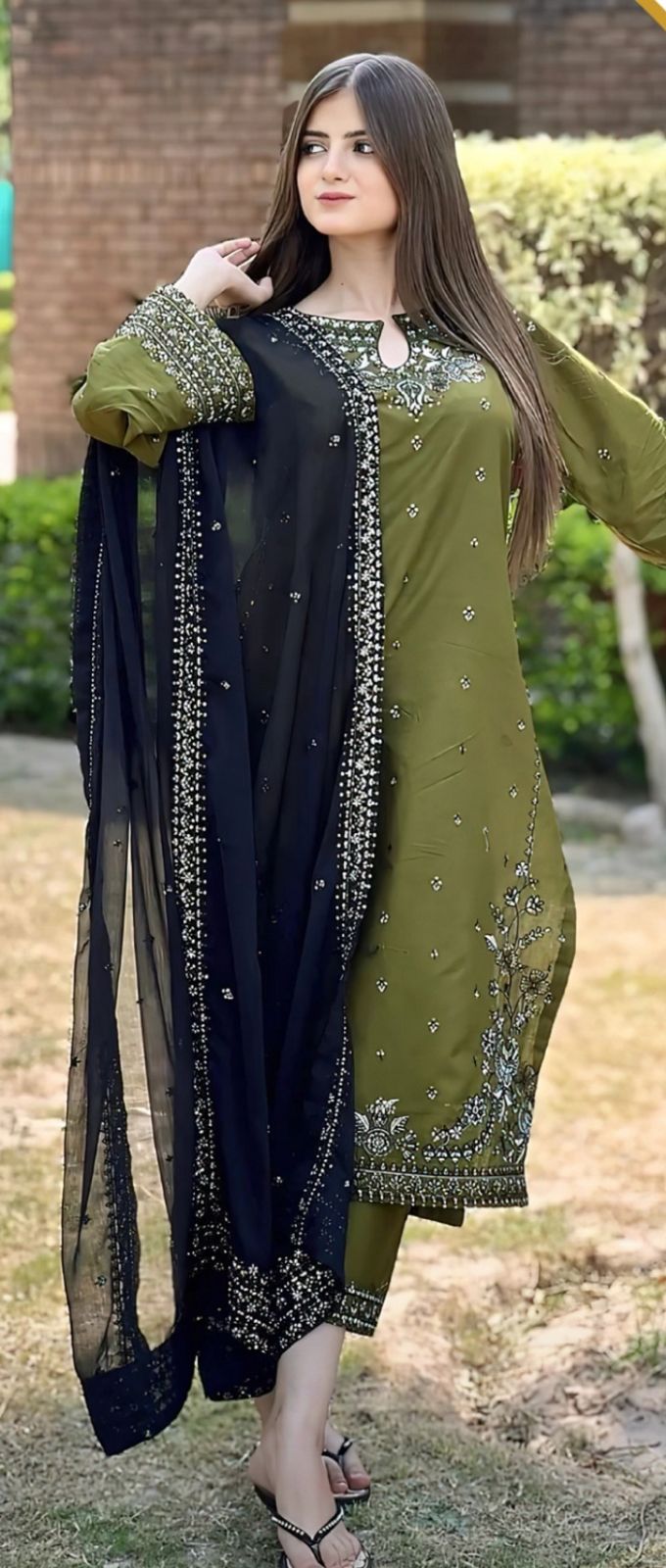 The embroidered sleeves further enhance the beauty of the outfit, while the embroidered border adds a finished and balanced appearance. Unlike simple printed lawn dresses, this design focuses more on embroidery work, making it ideal for women who want a dress that feels more festive and stylish without becoming too heavy for summer wear. The lawn fabric remains soft and breathable, helping the wearer stay comfortable throughout the day.