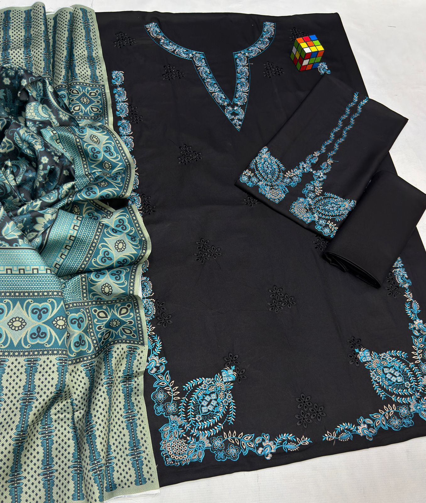 This suit comes with a catalog and branded bag, and it is after-wash guaranteed, meaning the fabric and embroidery will remain original even after washing.