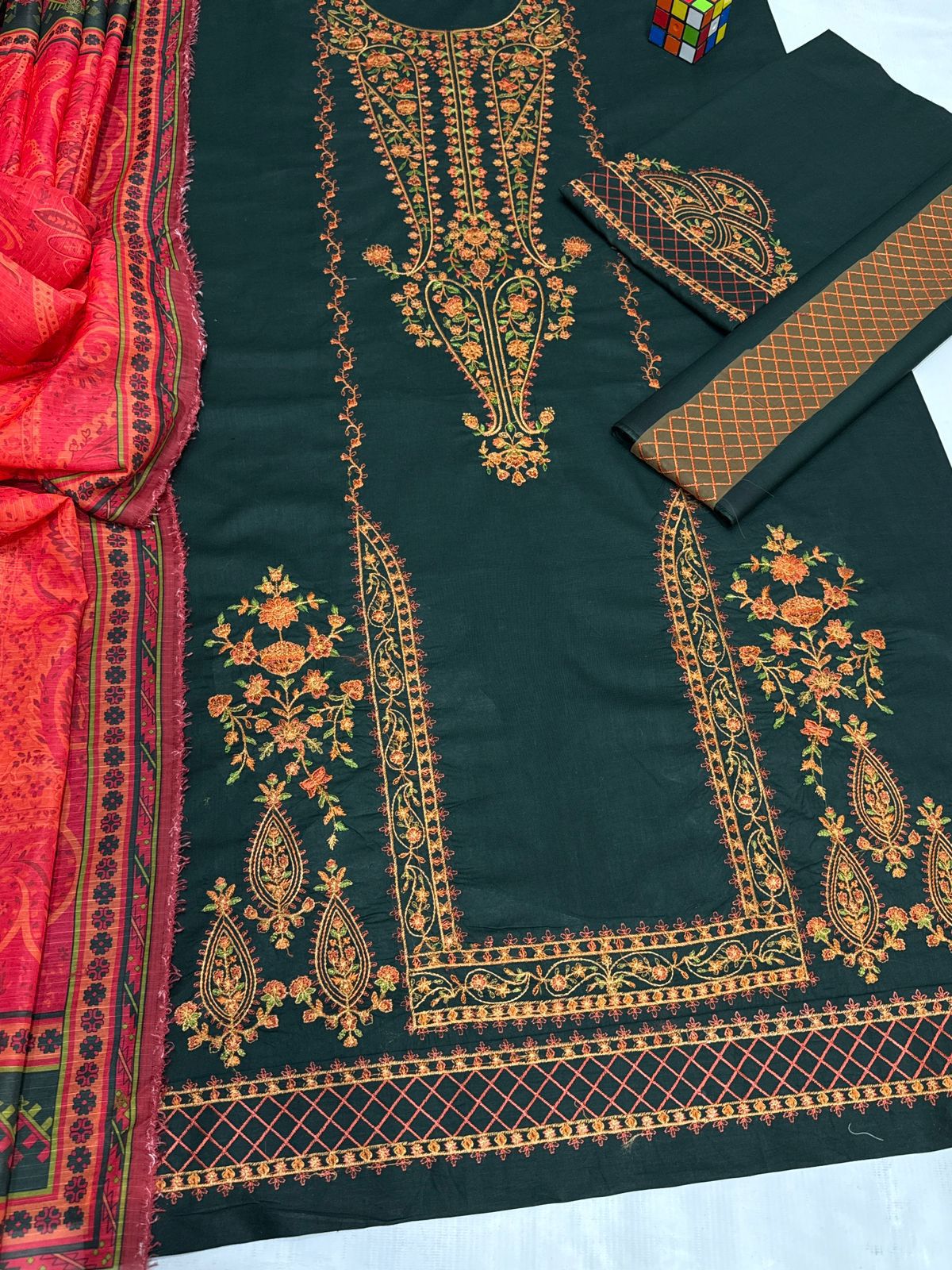 Premium Embroidered Lawn Suit with Digital Print Dupatta