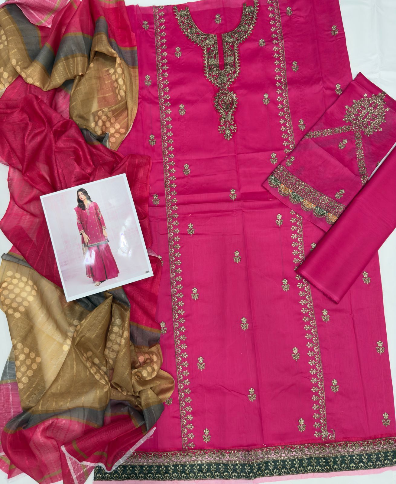 . The lightweight dupatta flows beautifully, making it perfect for Pakistani summer weather and Eid gatherings.