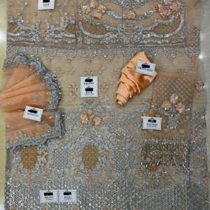 - Dupatta: Net Fully Embroidered With 4-Side Borders & Pallu Borders