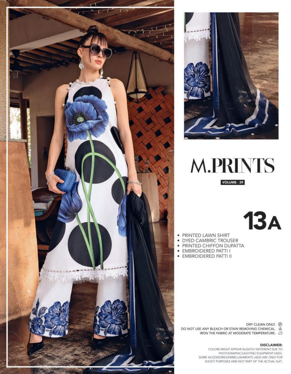 Completing the look, this graceful Maria B Printed Lawn Suit includes a printed chiffon dupatta decorated with four-side embroidered lace for a soft luxury finish. A printed matching trouser balances the overall outfit, creating a coordinated 3PC summer designer replica look.