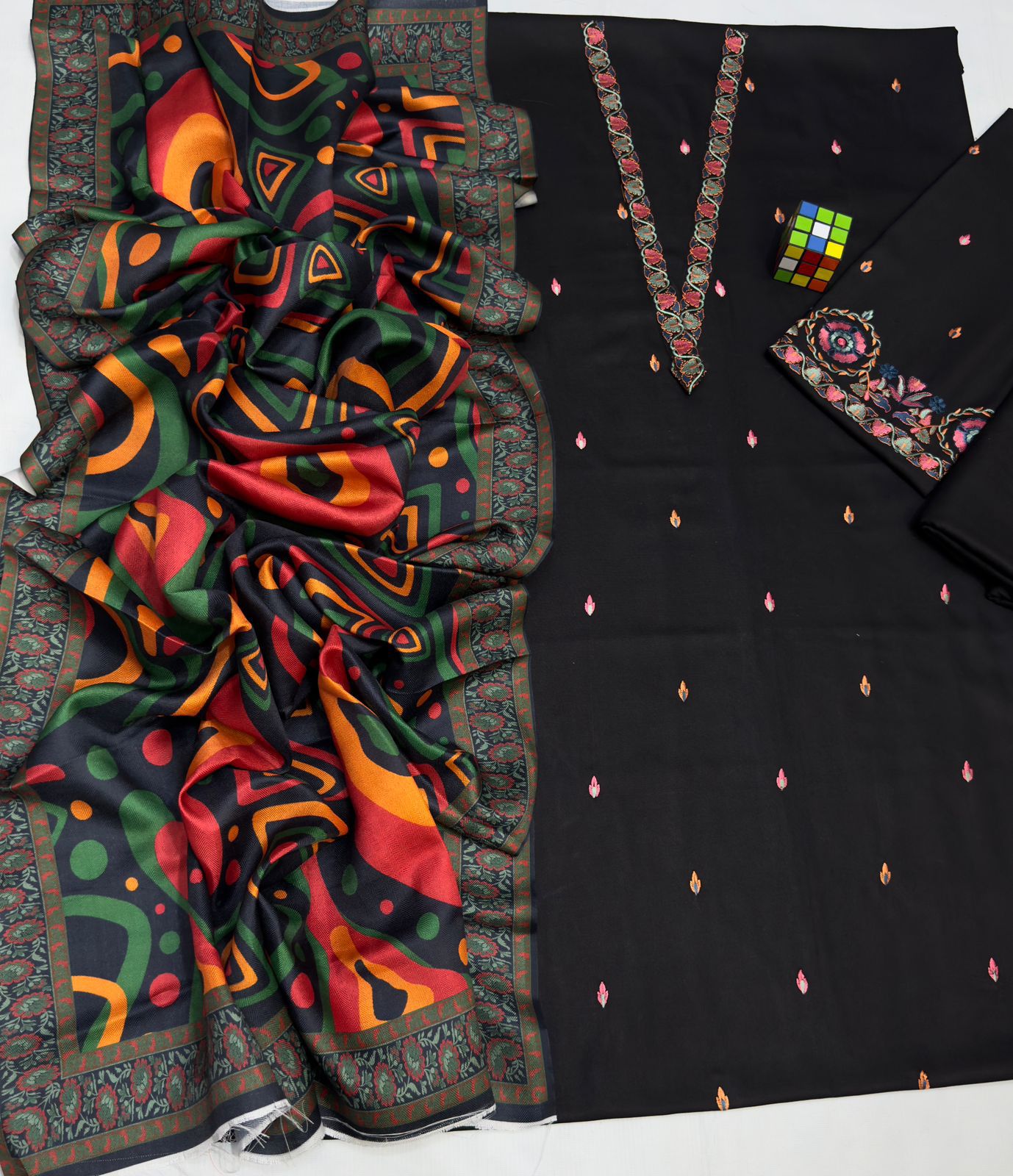 The Wool Digital Printed Shawl is one of the most admired elements in the Naqqasi 5056 Dhanak Suit. Customers often ask whether the shawl is warm and soft enough for winter, and the answer is yes — its wool-based digital print provides warmth, flexibility, and a graceful drape. This shawl complements the embroidered shirt and gives the entire suit a rich seasonal vibe.