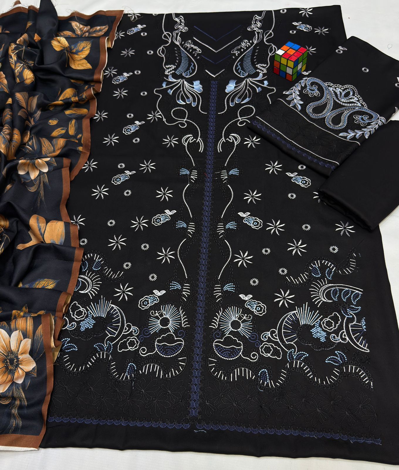 The shirt comes with heavy double-head embroidery on the full front and neckline, which gives it a rich, classy, and luxury finish. The sleeves are fully embroidered, adding detail and sophistication to the overall design. A heavy embroidered patch on the bottom of the shirt enhances the look even more. The back of the shirt and the trouser are plain, which balances the heavy embroidery and keeps the outfit comfortable.