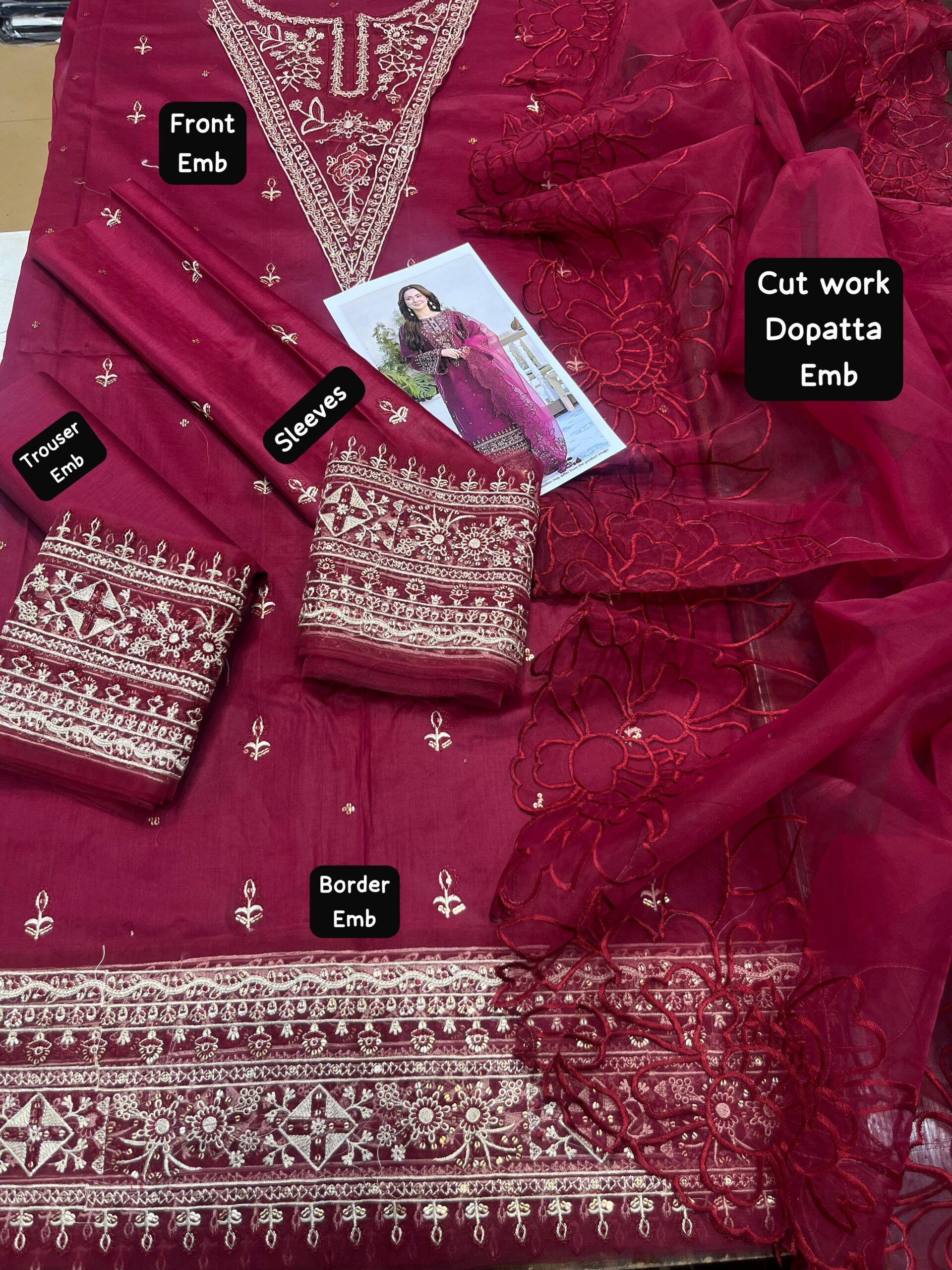 The highlight of this Qalamkar Summer Lawn Suit is its beautifully embroidered organza dupatta paired with matching trousers, creating a balanced and sophisticated outfit suitable for casual gatherings, daytime events and festive summer occasions.