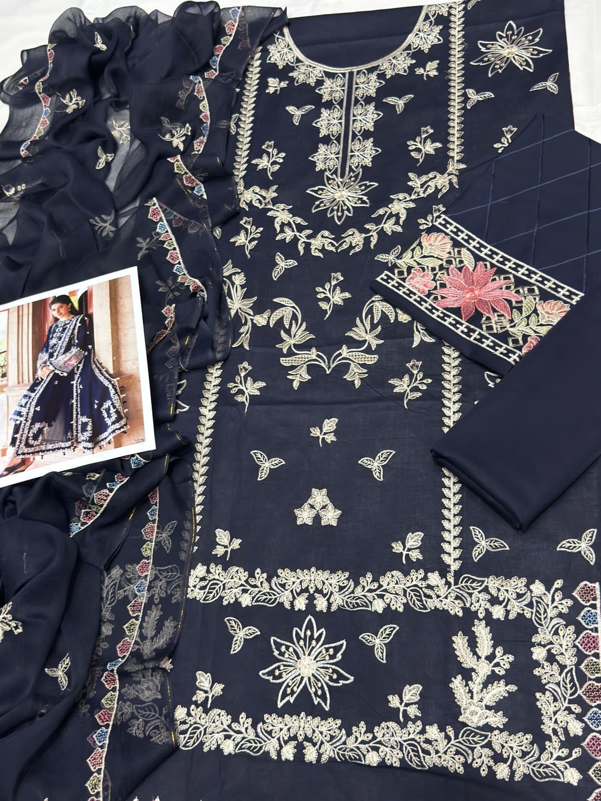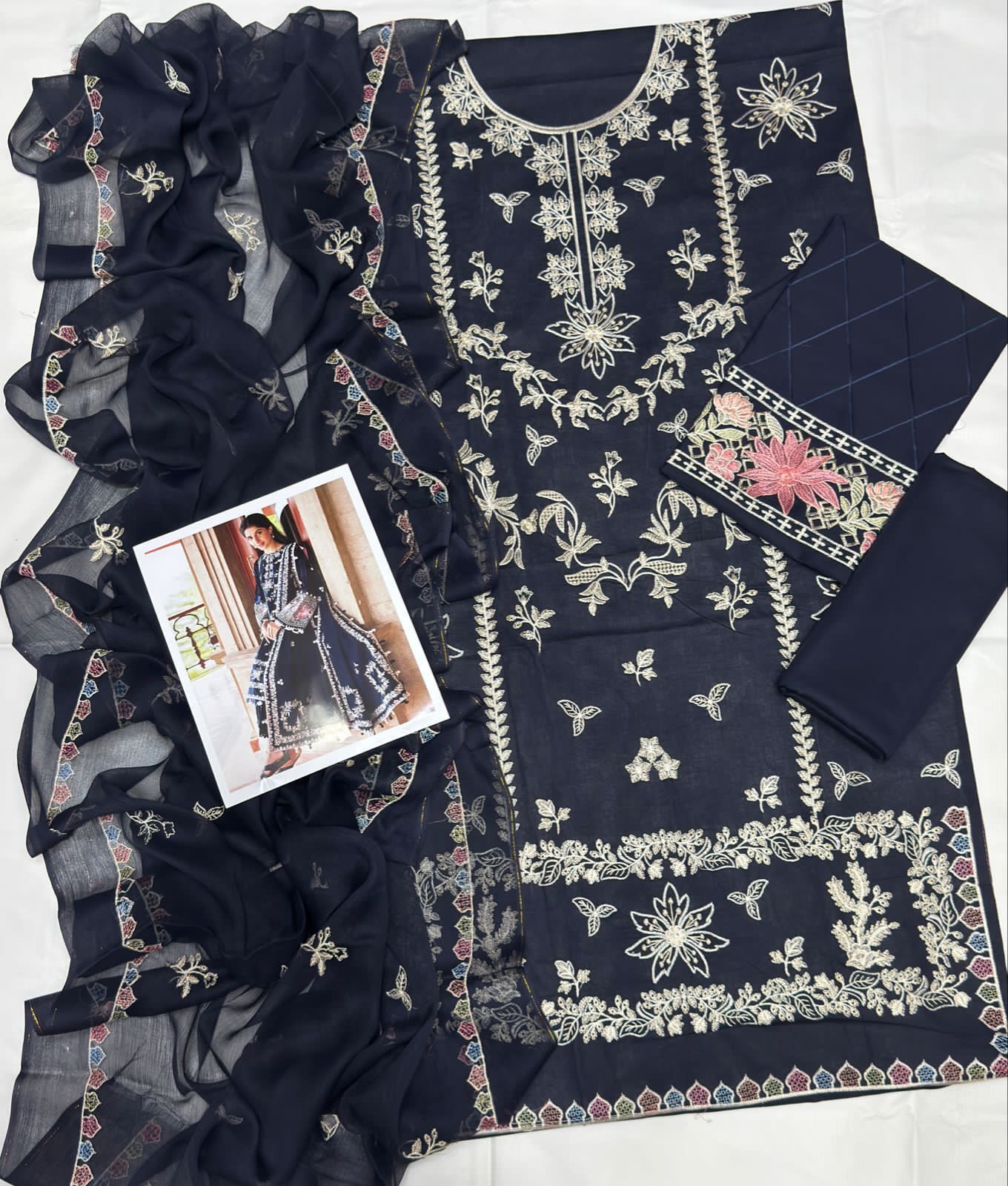 Luxury Embroidered Lawn Suit with Bamber Chiffon Dupatta