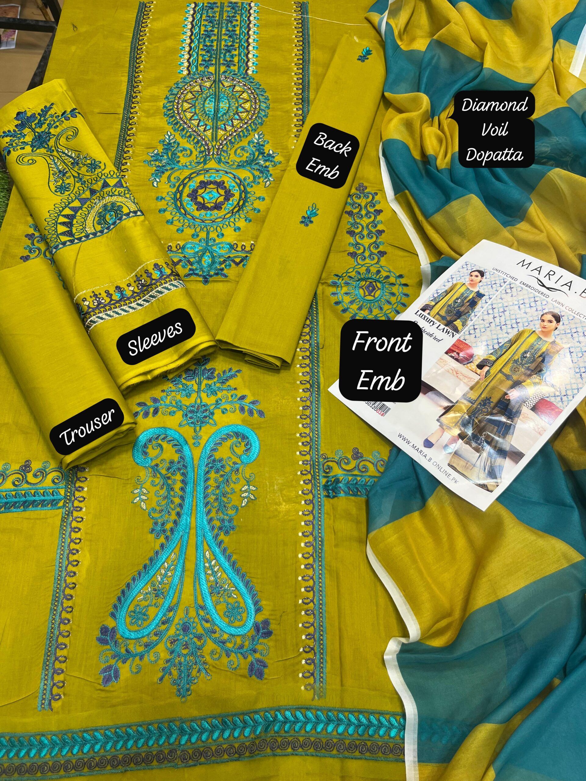 Step into timeless elegance with the Maria B Luxury Summer 2K25 Collection, exclusively brought to you by Zarqaaa. Designed for modern women who value both comfort and class, this 3PC embroidered cotton lawn suit delivers the perfect combination of style, quality, and tradition.