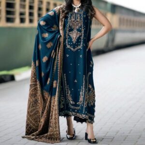 The suit is paired with a printed diamond dupatta that flows effortlessly and adds a bright contrast to the embroidery-heavy shirt. The plain trouser completes the look with balance and simplicity — giving you a flawless stitched finish for casual and festive wear alike.
